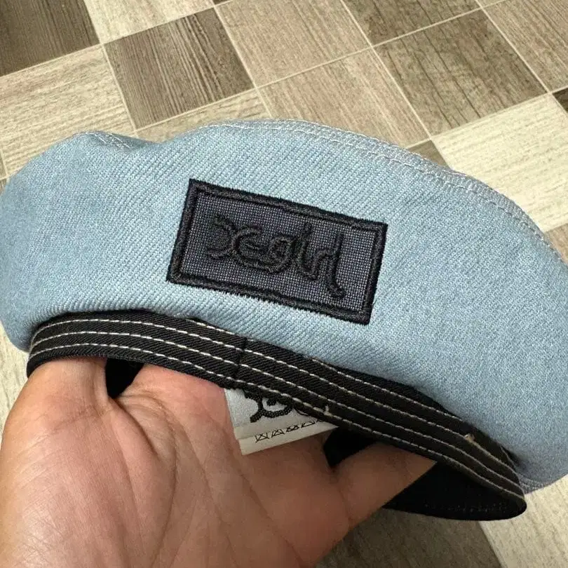 엑스걸 데님 베레모 라이트 블루 박스 로고