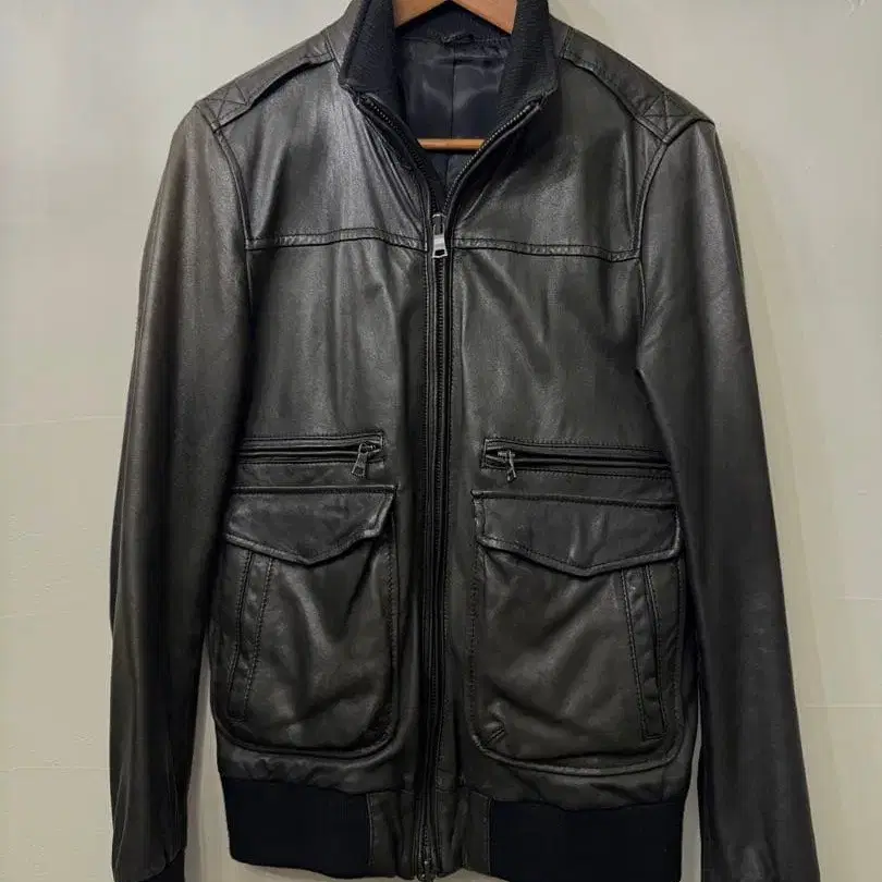 SHIPS JET BLUE 라무 가죽 자켓 리브 블루종