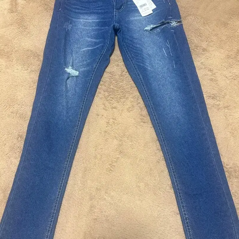 Riff 스키니 팬츠 L 네이비 데미지 가공