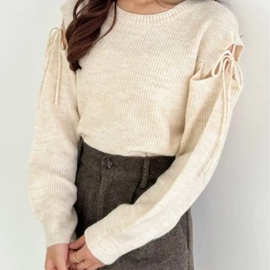 Heather 아이보리 니트 숄더 슬릿 어깨 트임
