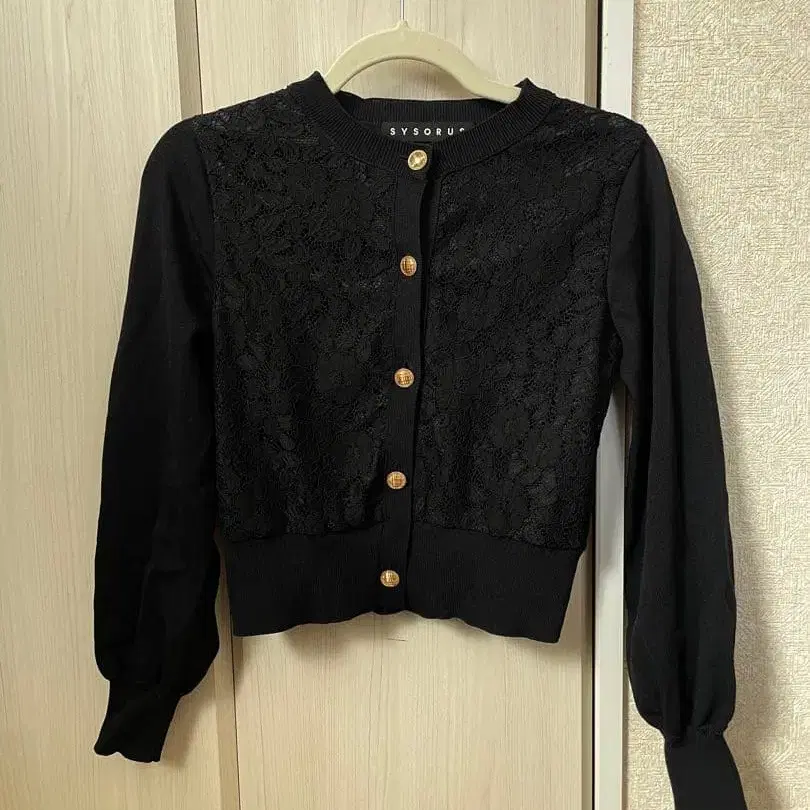 SYSORUS x akko3839 니트 가디건 레이스 블랙