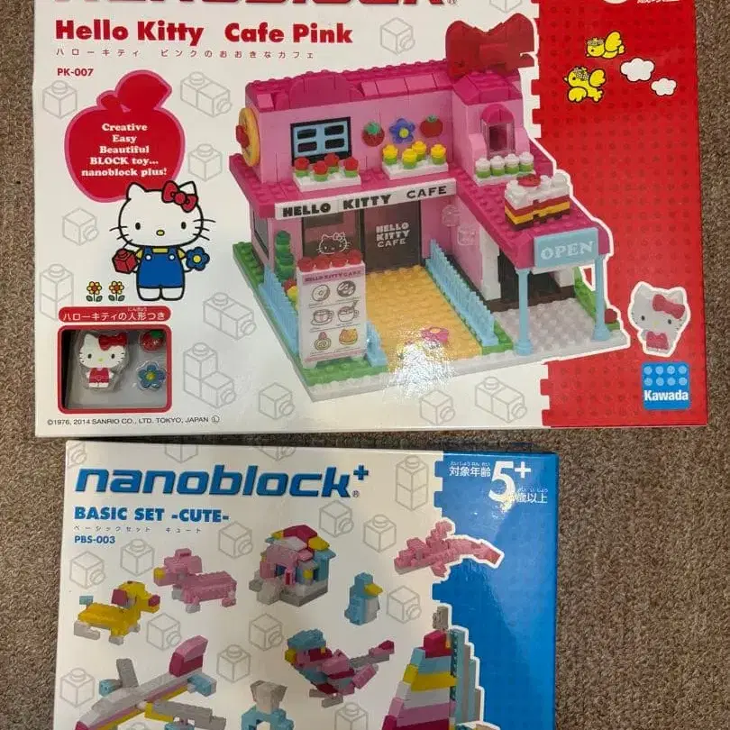 나노블럭 헬로키티 핑크색 큰 카페와 베이직 세트 큐트