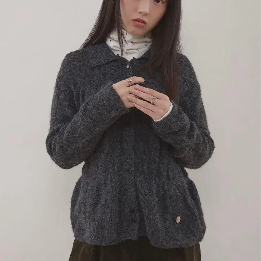 muhet 셔링 니트 셔츠 가디건