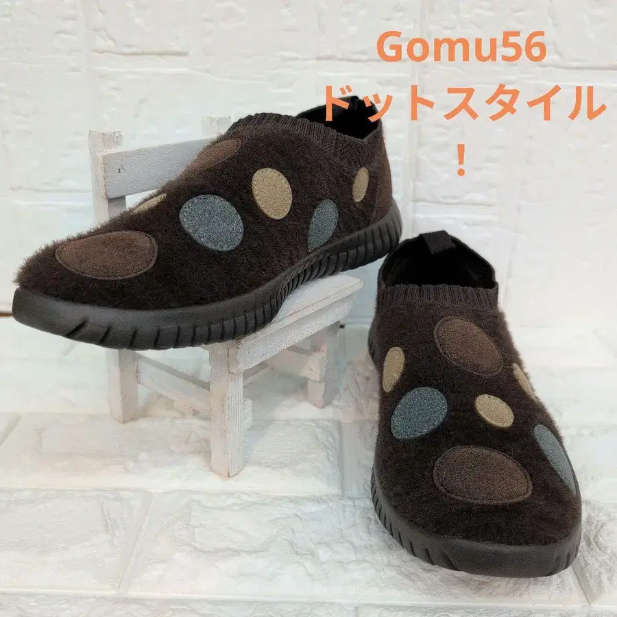 Gomu56 도트 무늬 기모 니트 슬립온 스니커즈 LL 사이즈