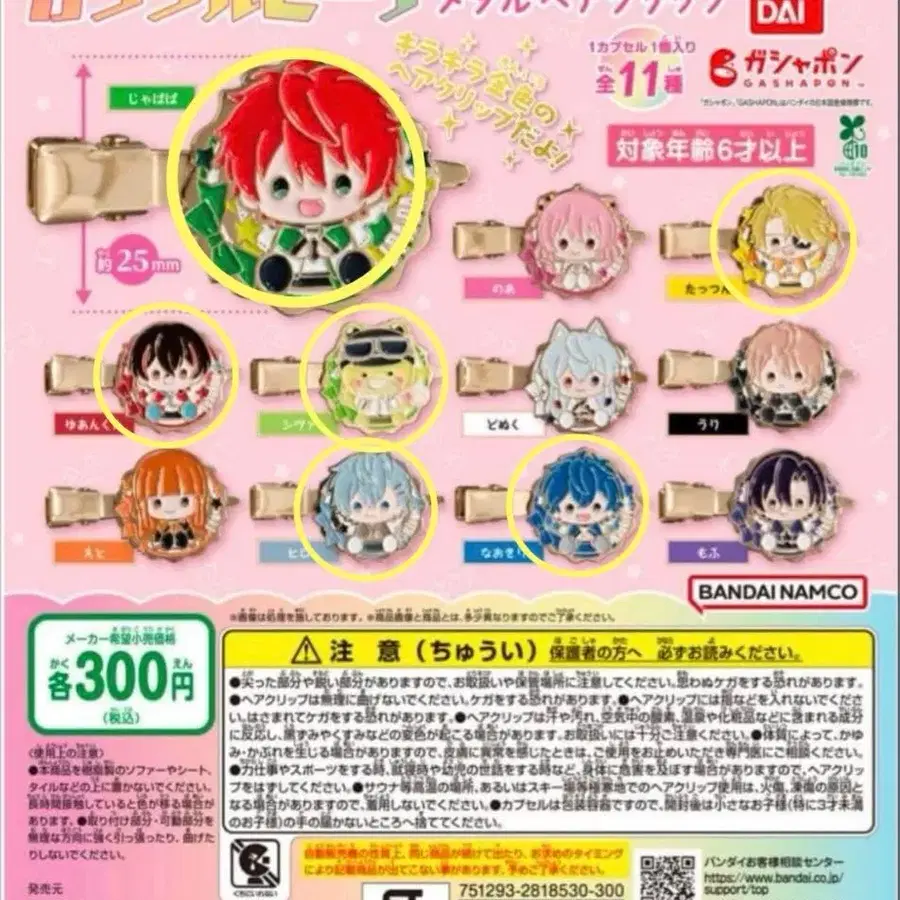 BANDAI 컬러풀 피치 메탈 헤어 클립 6개 세트