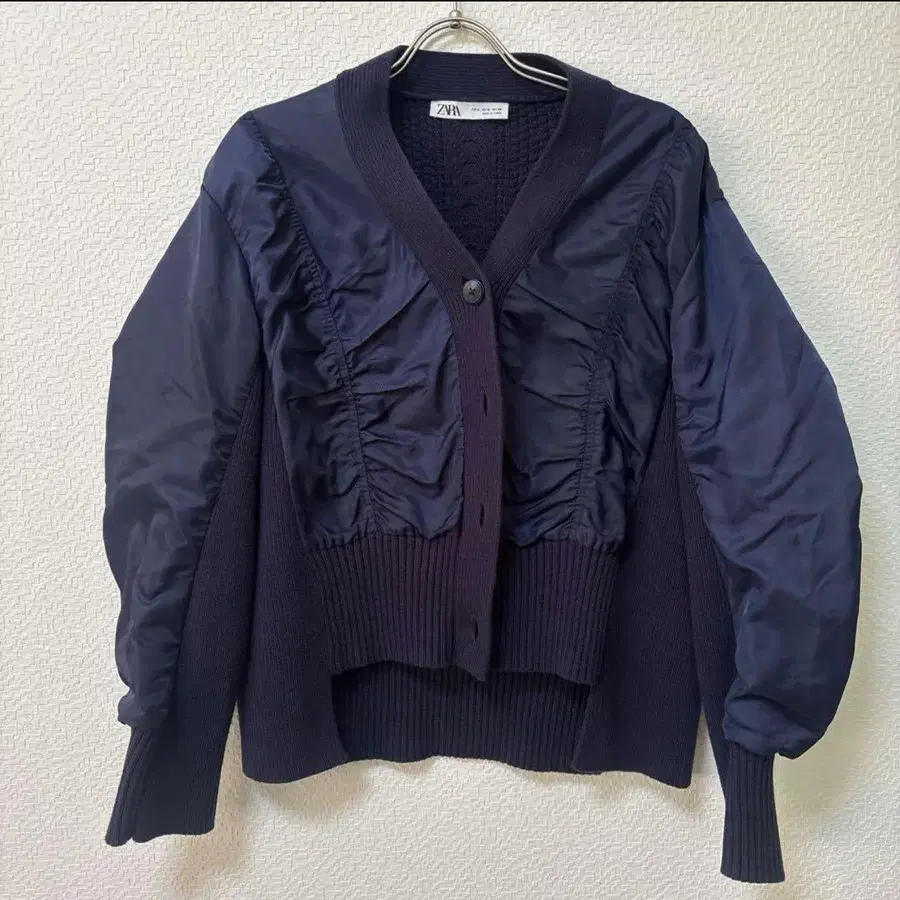 [ ZARA ] 새상품급 네이비 이소재 대비 니트 가디건 새틴 y2k