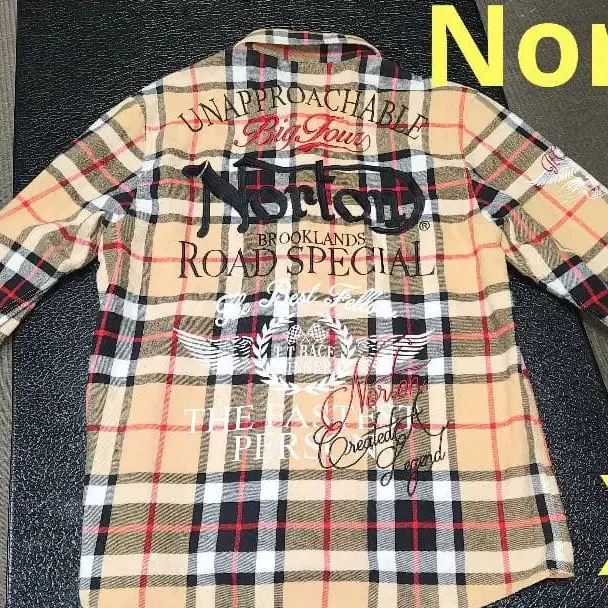 새상품급 Norton 백 자수 체크 무늬 코튼 플란넬 셔츠 XL 노튼
