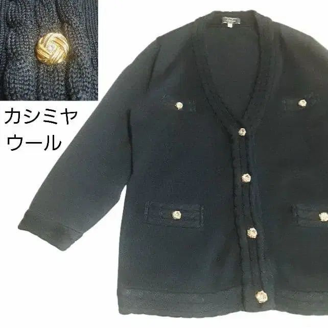 레리안 캐시미어 울 가디건 니트 블랙 골드 버튼 ML