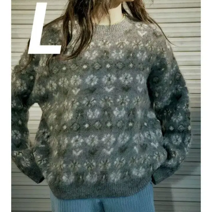 ZARA 기모 자카드 니트 스웨터 그레이 L 완판템