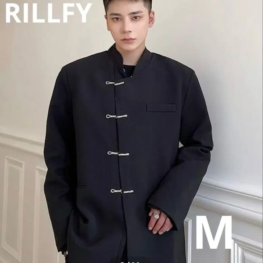 새상품 RILLFY 차이나풍 스탠드 카라 자켓 블랙 빅