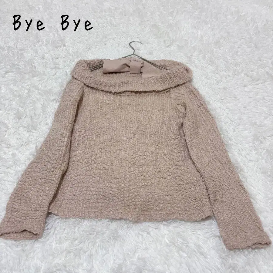 [ 바이바이 ] 긴팔 부클 니트 스웨터 M 리본 포함 카울넥 핑크 계열