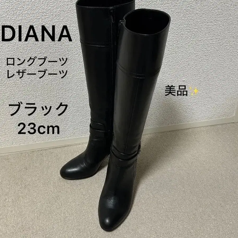 새상품급 DIANA 롱 부츠 가죽 부츠 블랙 23