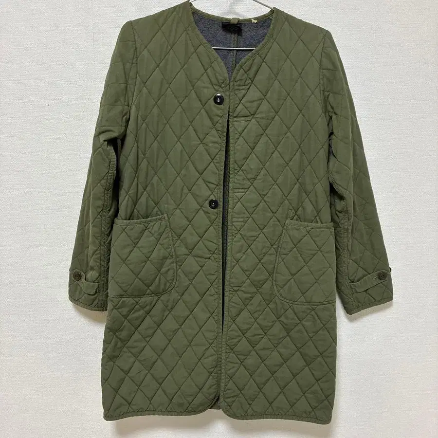 OMNIGOD 카키 퀼팅 노카라 자켓 코트