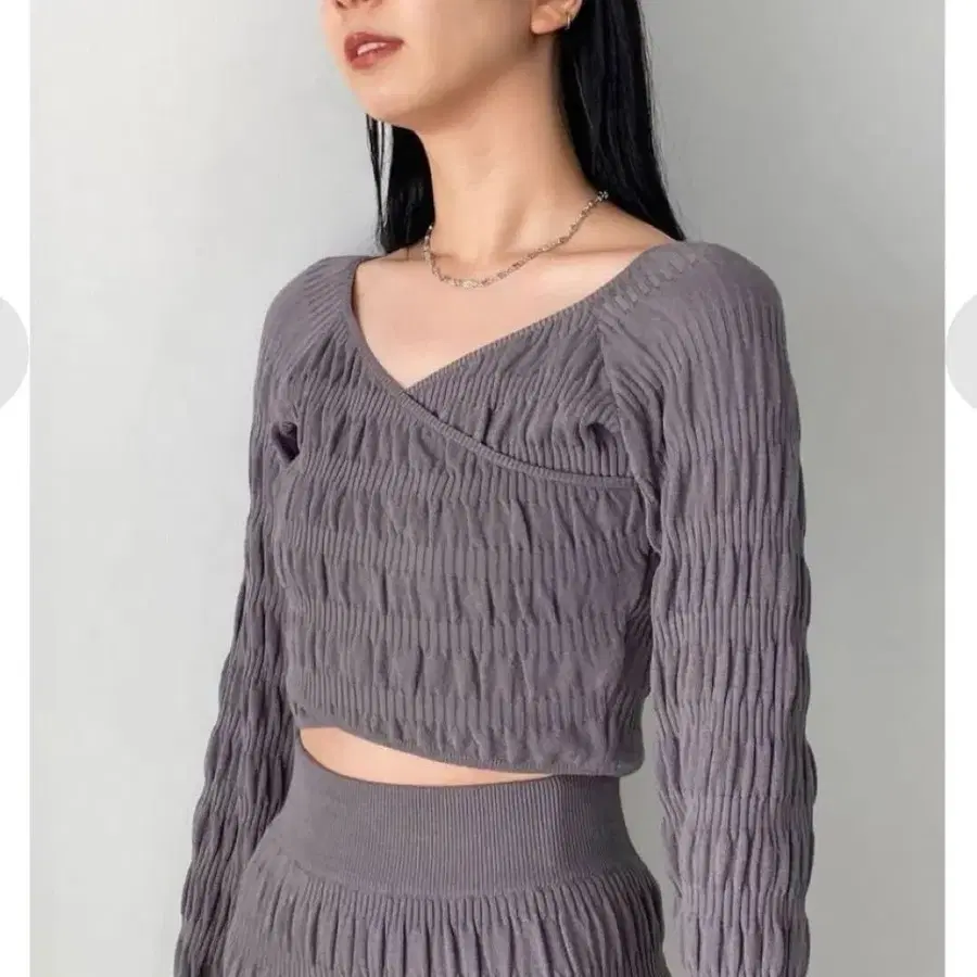 EMODA SHIRRING CROSS KNIT 니트 그레이