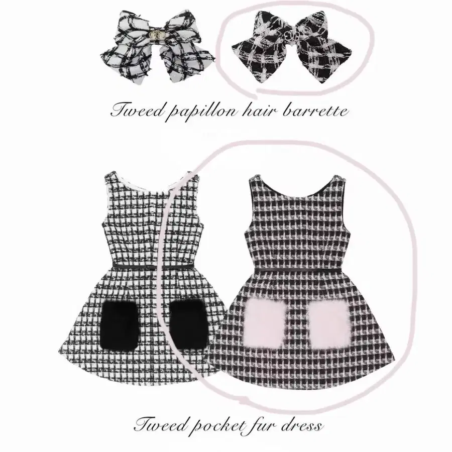 lumignon 원피스 리본 머리핀 핑크 트위드 세트
