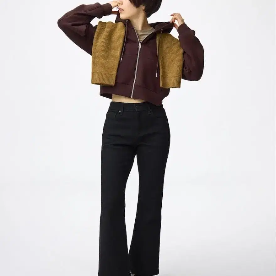 슬림 플레어 청바지 GU 기장 짧음 블랙