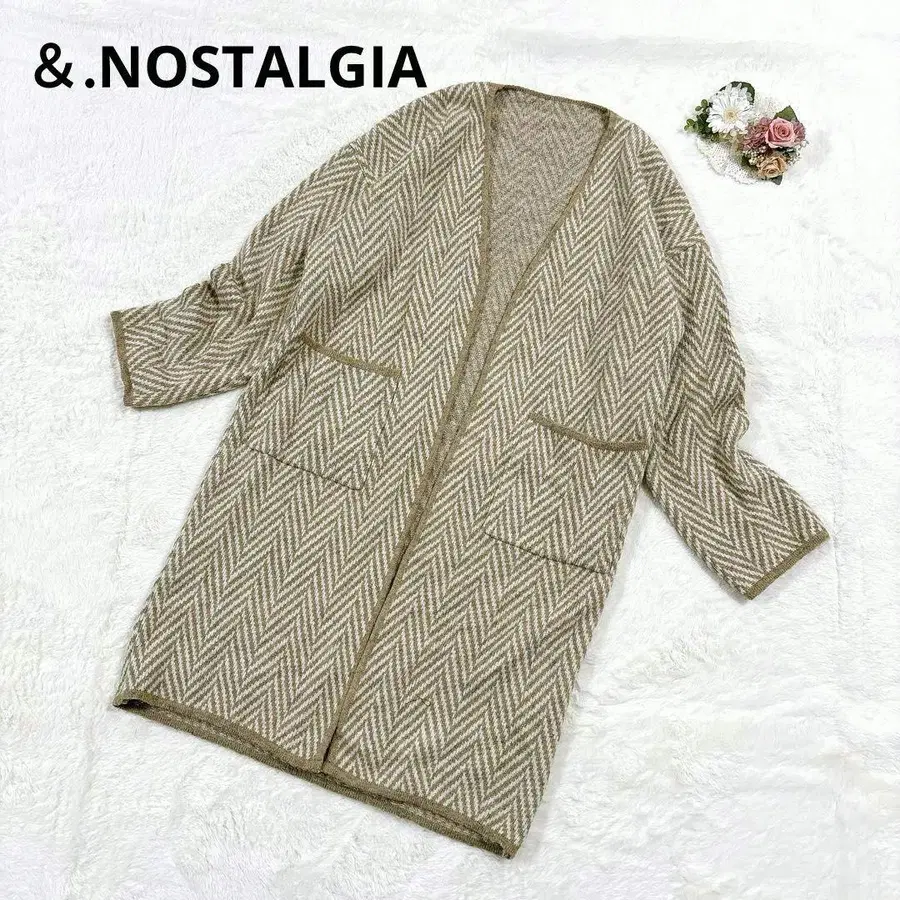 앤드 도트 노스탤지어 롱 니트 가디건 헤링본 올 패턴 체형 커버