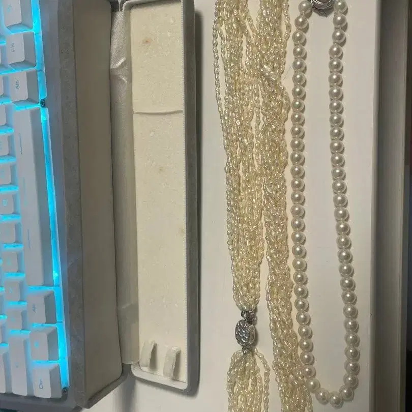 화이트 펄 다중 스트랜드 목걸이