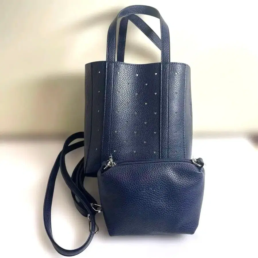 blancvert 네이비 토트백 하트 스터드 부착 파우치 포함