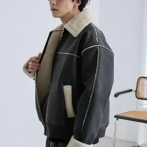 • COMME CA MEN 에코 무스탕 자켓 보아 안감 블랙