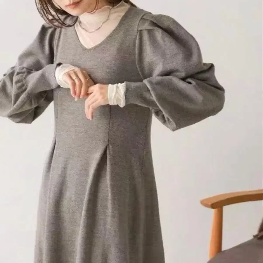 그레이 니트 롱 원피스 긴팔 M