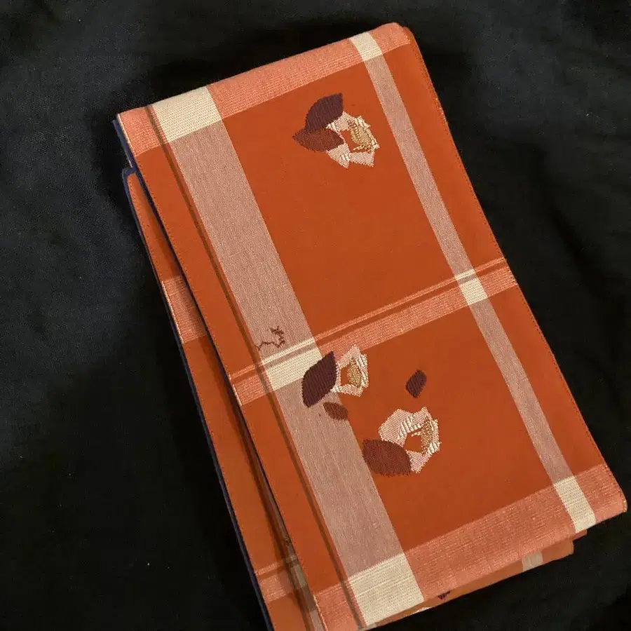 요네자와 격자 꽃무늬 감색 리버서블 반폭 오비