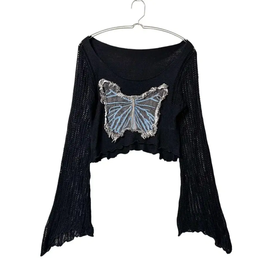 버터플라이 메쉬 니트 스웨터 숏 기장 그런지 고딕 y2k