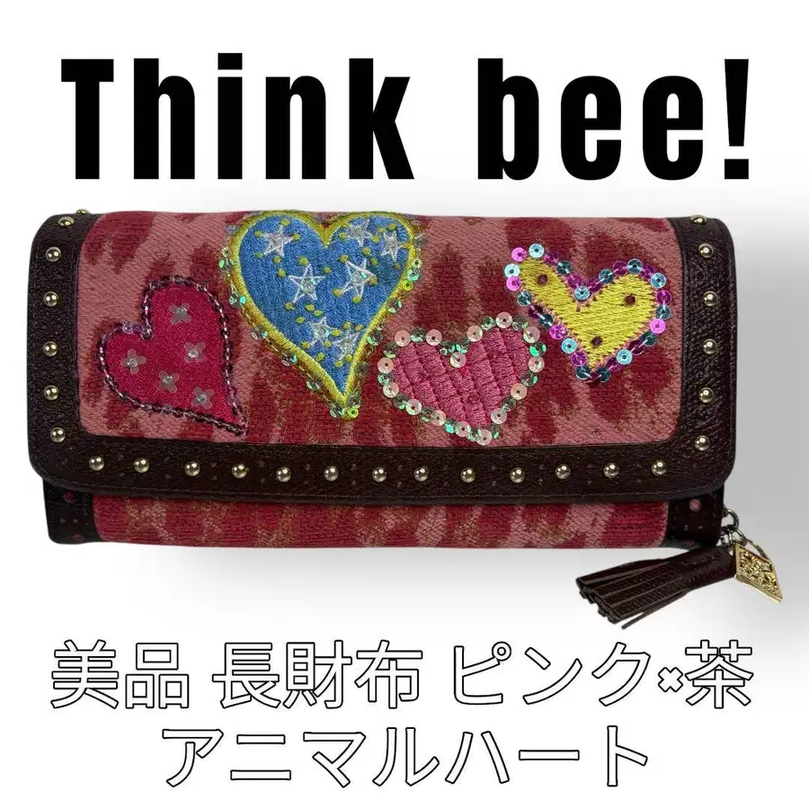 Think Bee 싱크비 장지갑 애니멀 하트 하트 무늬 핑크 브라운