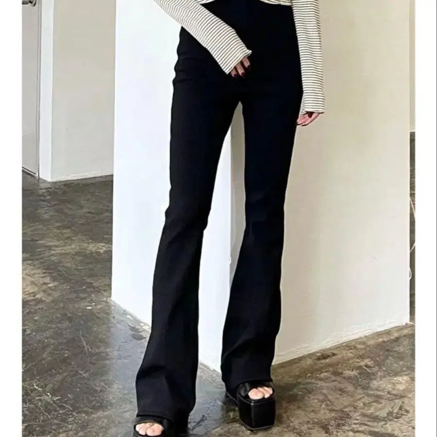 EMODA 하이웨스트 플레어 팬츠 블랙