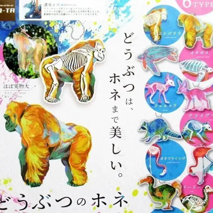 동물의 뼈 구조를 알 수 있는 동물의 뼈 아크릴 키체인 2종 전 6개