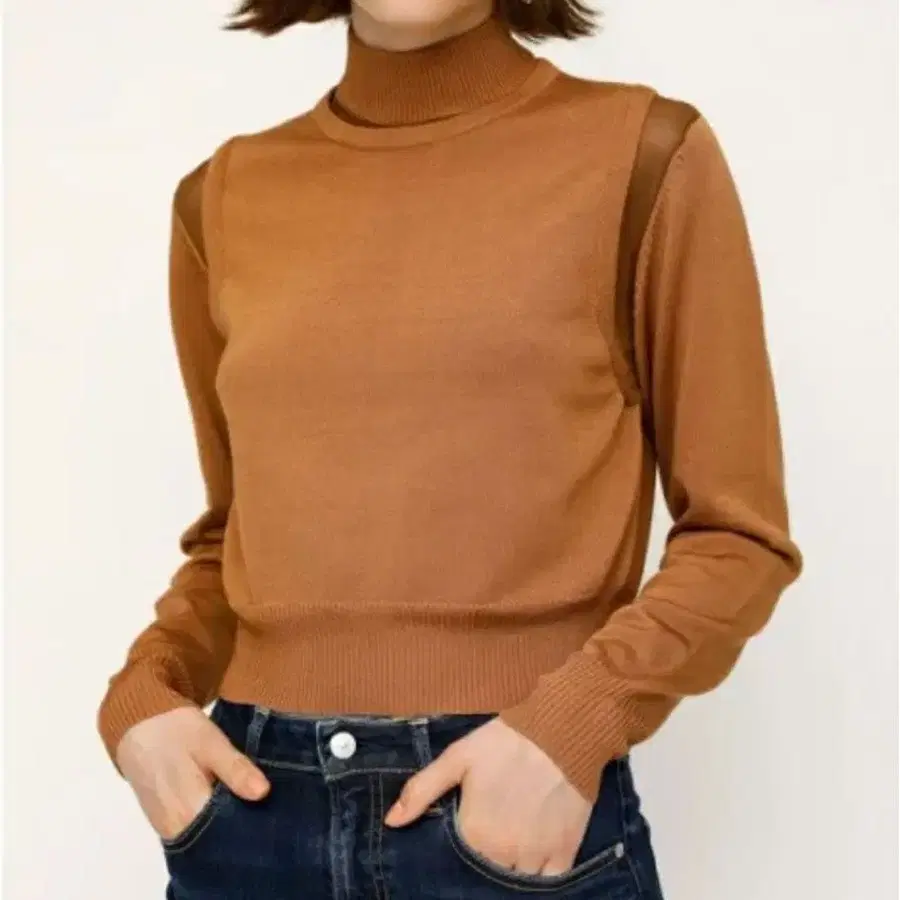 SLY 스라이 상의 니트 브라운 터틀넥 니트 긴팔 사이즈 1