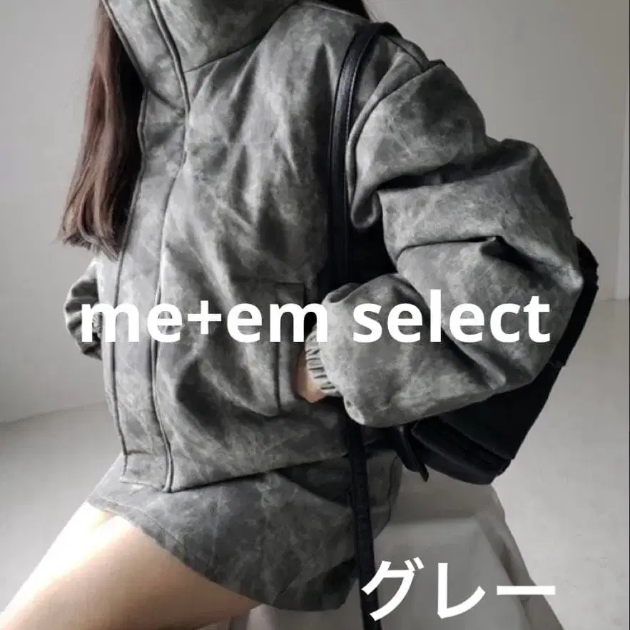 me+em select 인조 가죽 숏 다운 프리 사이즈 그레이