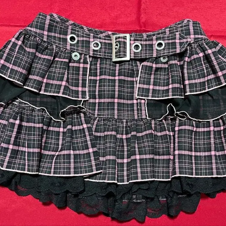ALGONQUINS 블랙 핑크 체크 무늬 스커트