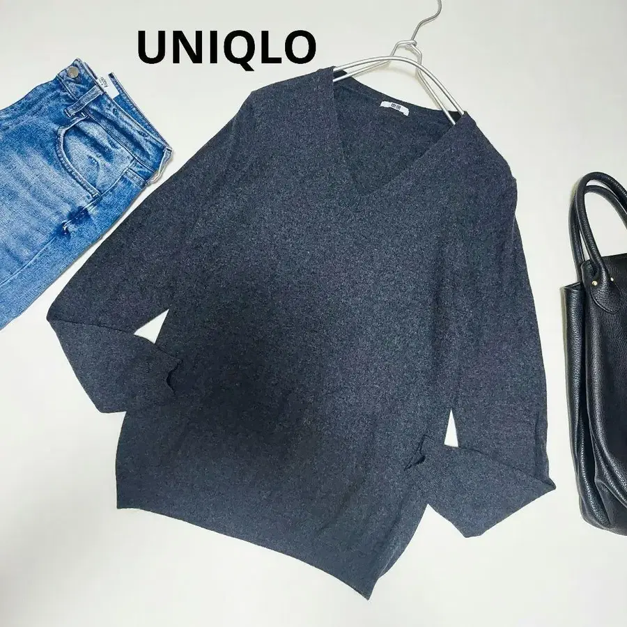 UNIQLO 유니클로 캐시미어 100% V넥 니트 풀오버 다크 그레이