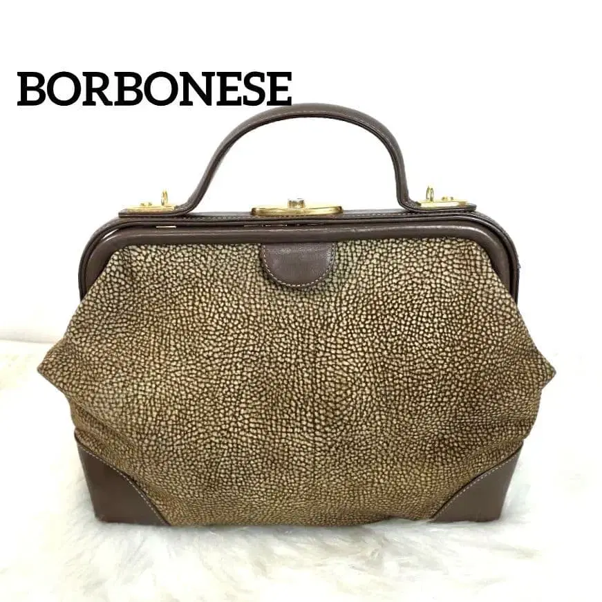 볼보네제 스웨이드 가죽 가마구치 핸드백 브라운 메추라기 골드