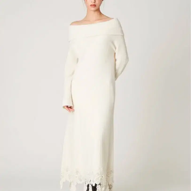 새상품 FRAY I.D 폭스 울 레이스 헴 원피스 그레이