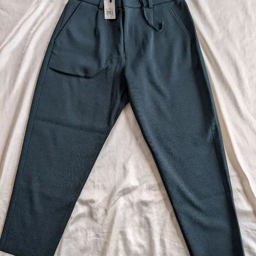 미사용 새상품 ESTNATION 다크 그린 밀라노 리브 니트 팬츠 턱