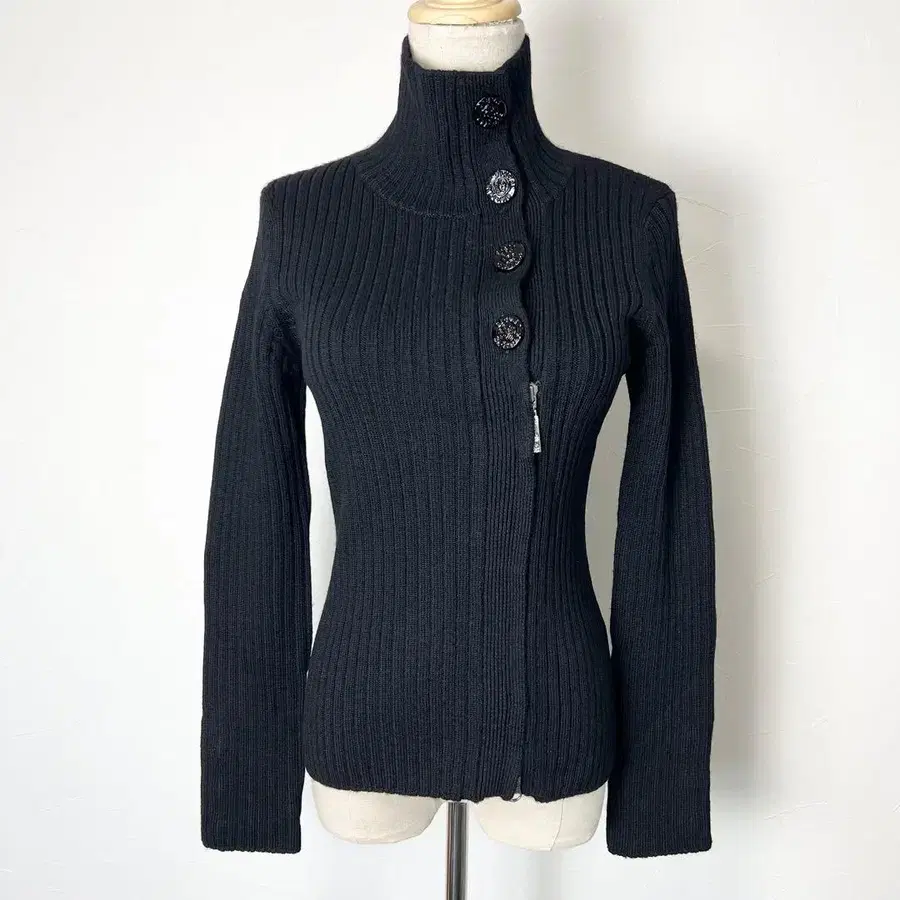 자동 번역되었어요. 원문보기새상품급 CLATHAS 블랙 리브 니트 지퍼 가디건 까멜리아 버튼 38/M
