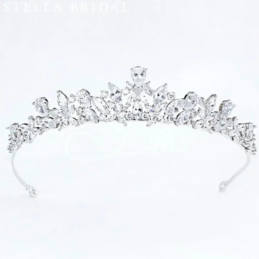 빛나는 별처럼 마키스컷, 티어드롭컷 등 다양한 컷의 지르코니아를 꽉 채워 담은 아름다운 티아라입니다.