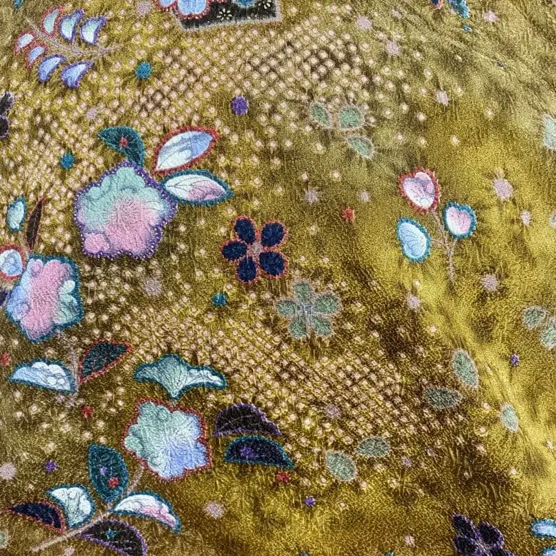 애호가를 위한 츠지 가 꽃무늬 크레이프 원단 겨자색