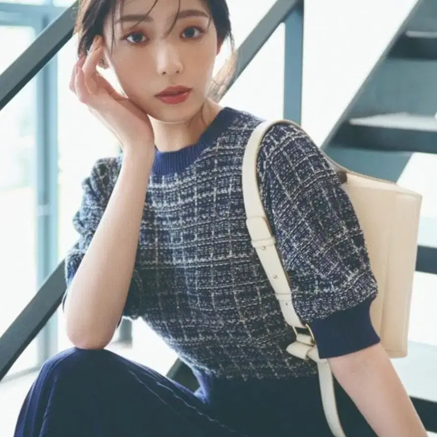 NATURAL BEAUTY BASIC 트위드 니트 원피스 네이비