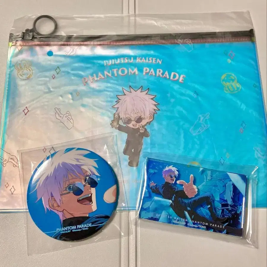 주술회전 팬파레 복권 고죠 사토루 캔뱃지 아크릴 블록 오로라 파우치