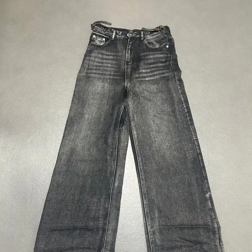 asapmode 크리스드 워시드 와이드 데님 팬츠