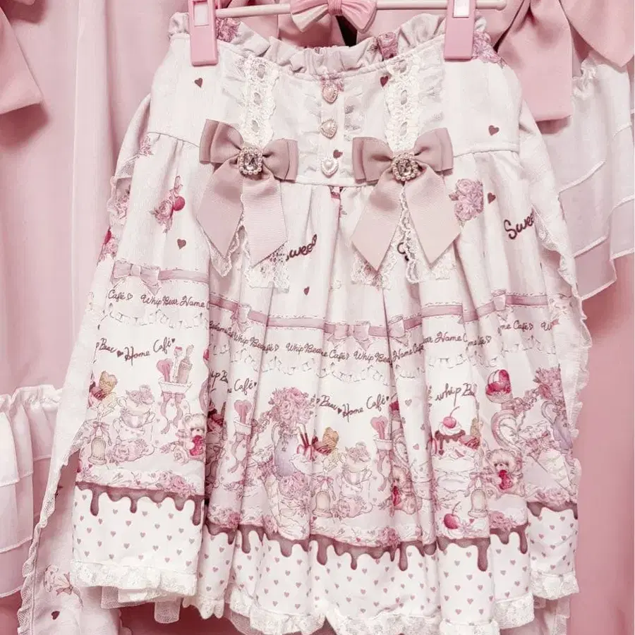 LIZLISA Whip Bear Home Cafe 패턴 치마바지 화이트