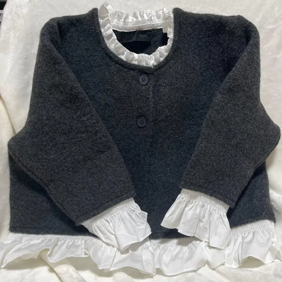 ZARA 포플린 콤비 니트 자켓 다크 그레이