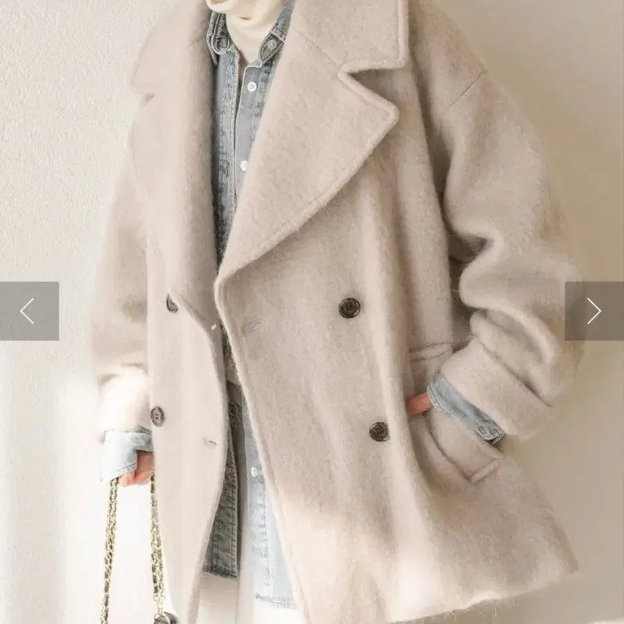 기모감이 있는 부드러운 질감이 매력적인 샤기 코트.