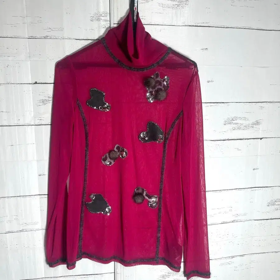 이타리야 핑크 터틀넥 파워넷 긴팔 시스루 L 티셔츠