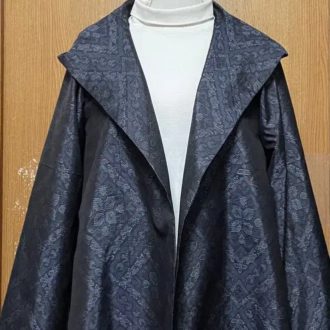 기모노 리메이크 남색 계열 오시마 후드 부착 자켓 L~LL 사이즈