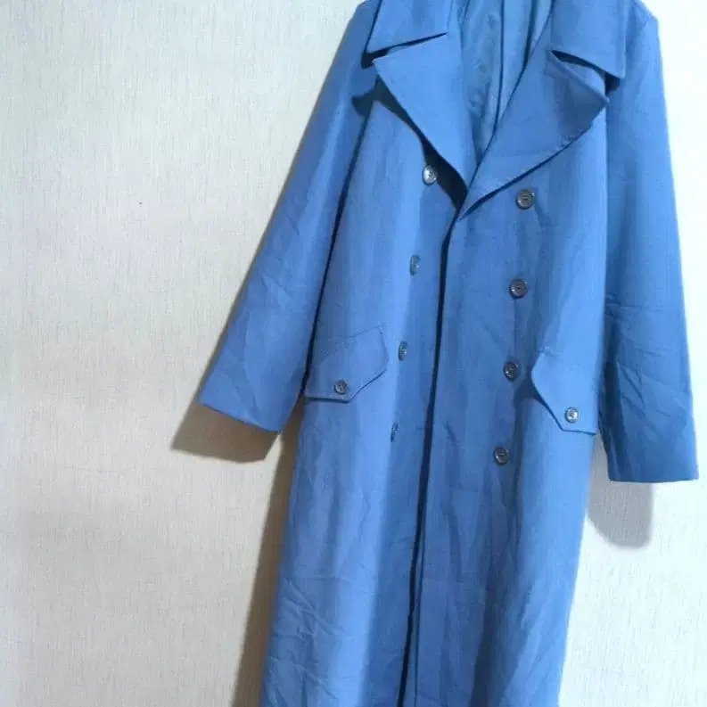 자동 번역되었어요. 원문보기블루 더블 브레스트 롱 코트, 라펠 칼라, 정중한 봉제.