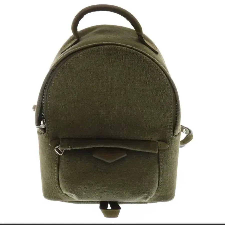 올리브 그린의 백팩 스타일로, 프론트 포켓과 조정 가능한 숄더 스트랩이 특징입니다.
